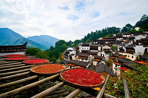 江西婺源、湖南等地(dì)的村民將辣(là)椒、玉米、南瓜鋪滿屋頂,繪(huì)就最濃烈的秋日畫卷。